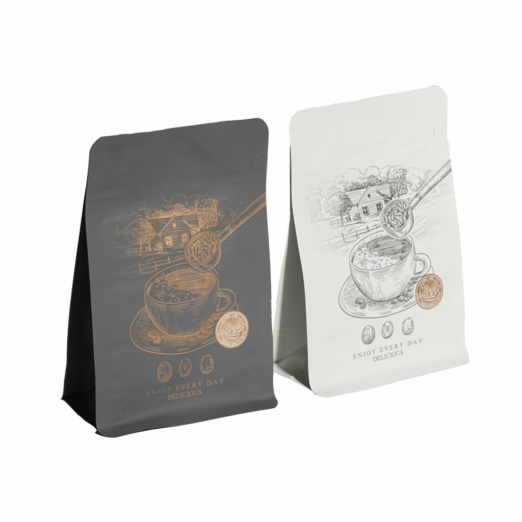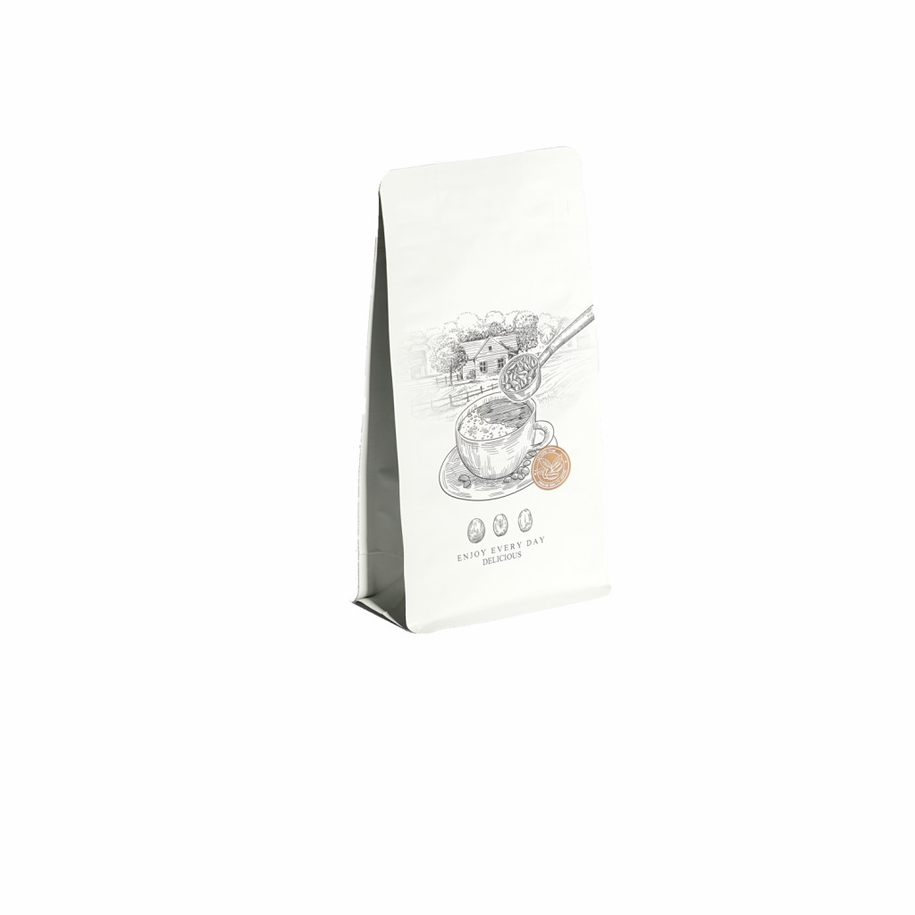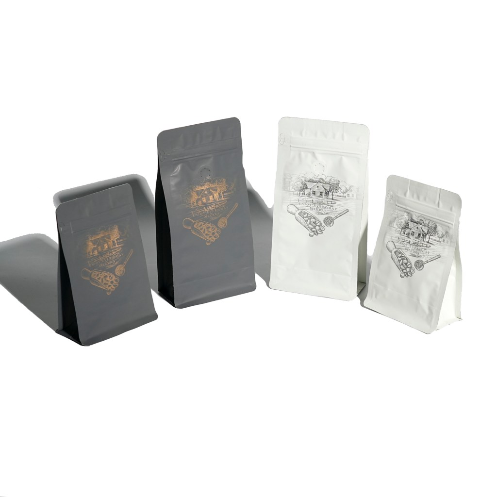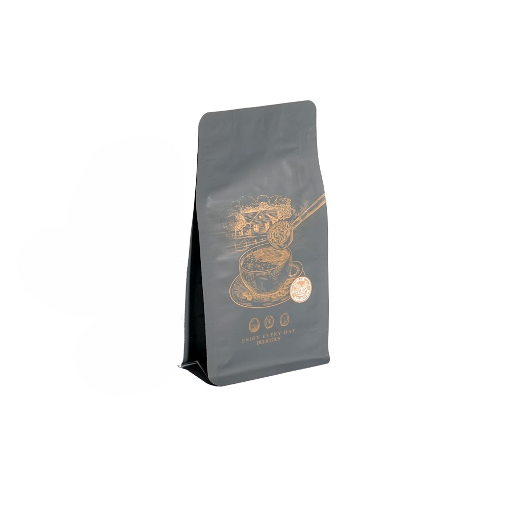 500g Soft Touch Flat Bottom Recyclable Ziplock Coffee Bag with One-Way Degassing Valve and Laser Tear Line Zipper