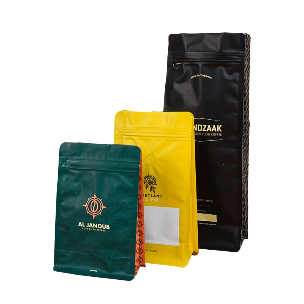 | Material | Food grade plastic or Kraft paper material PET/VMPET/PE, PET/AL/PE, MOPP/VMPET/PE, MOPP/CPP or customized |