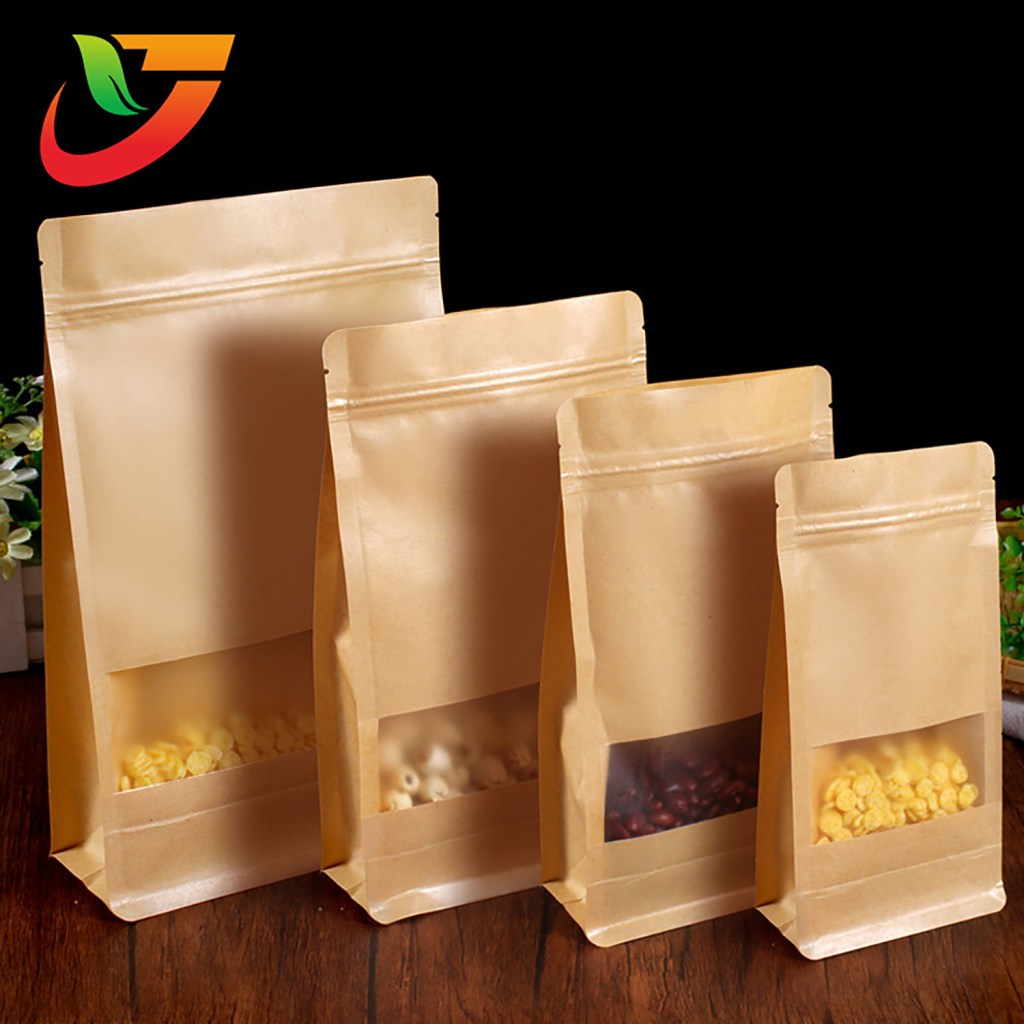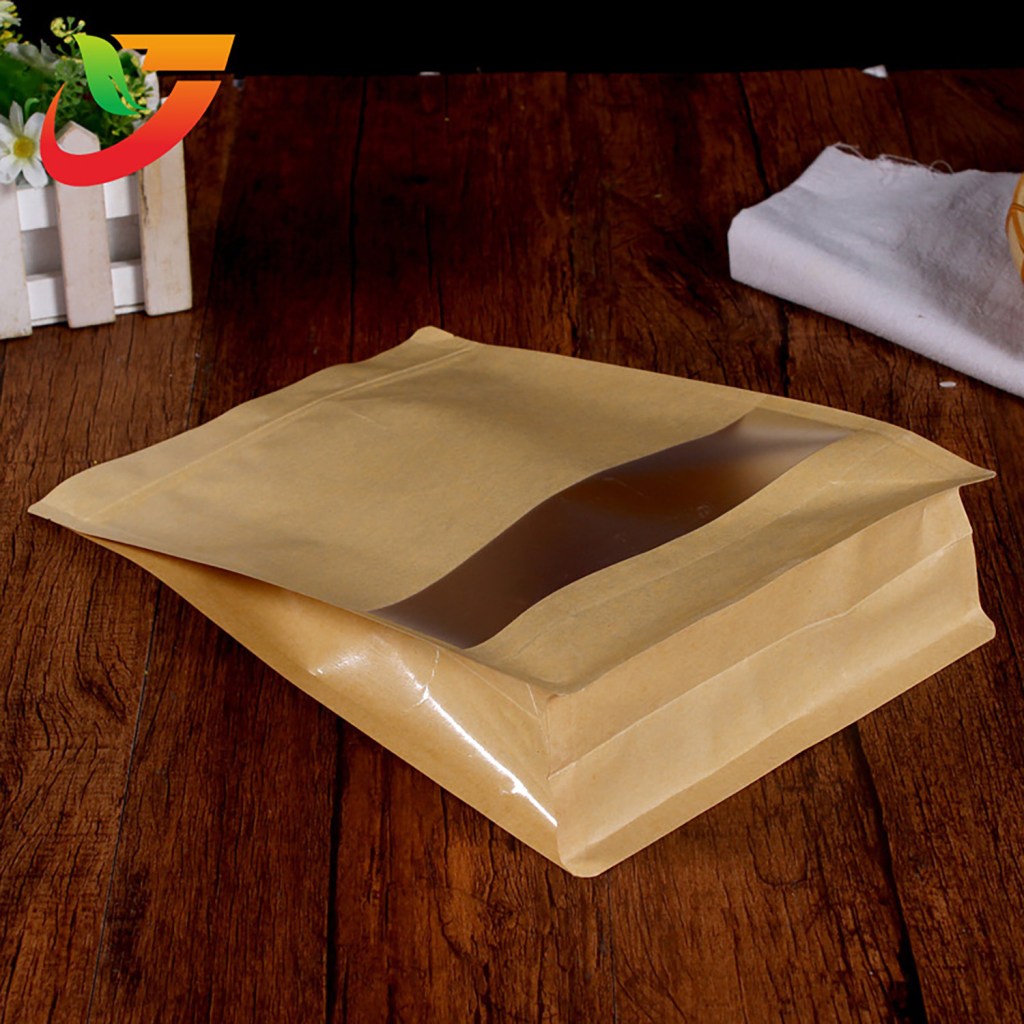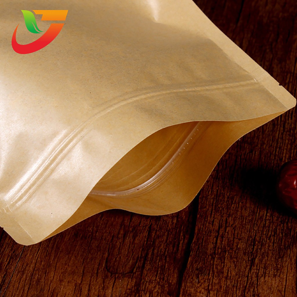 Multi-Specification Pack Wholesale Products Stand up Flat Bottom Bag with Yellow Zipper Kraft Paper