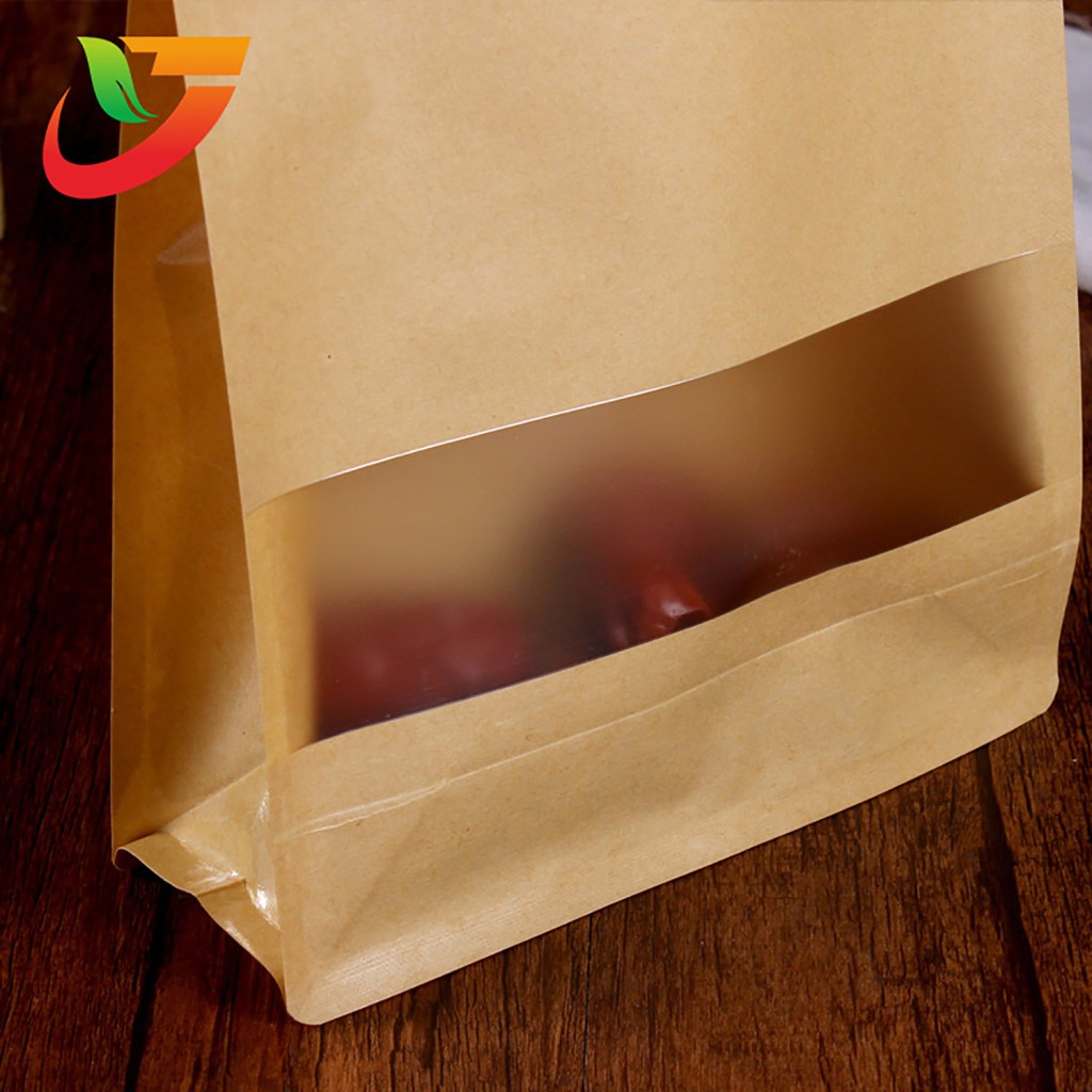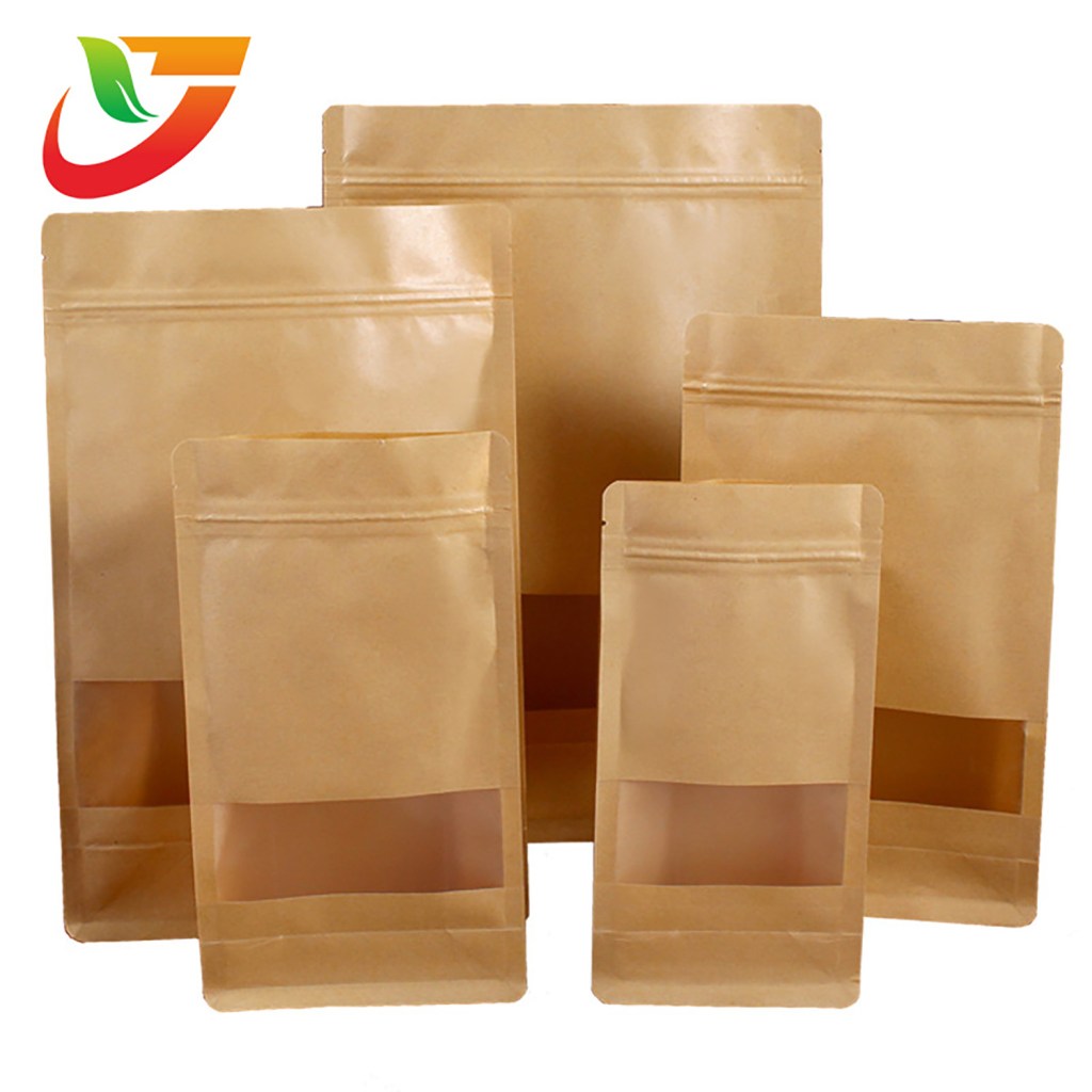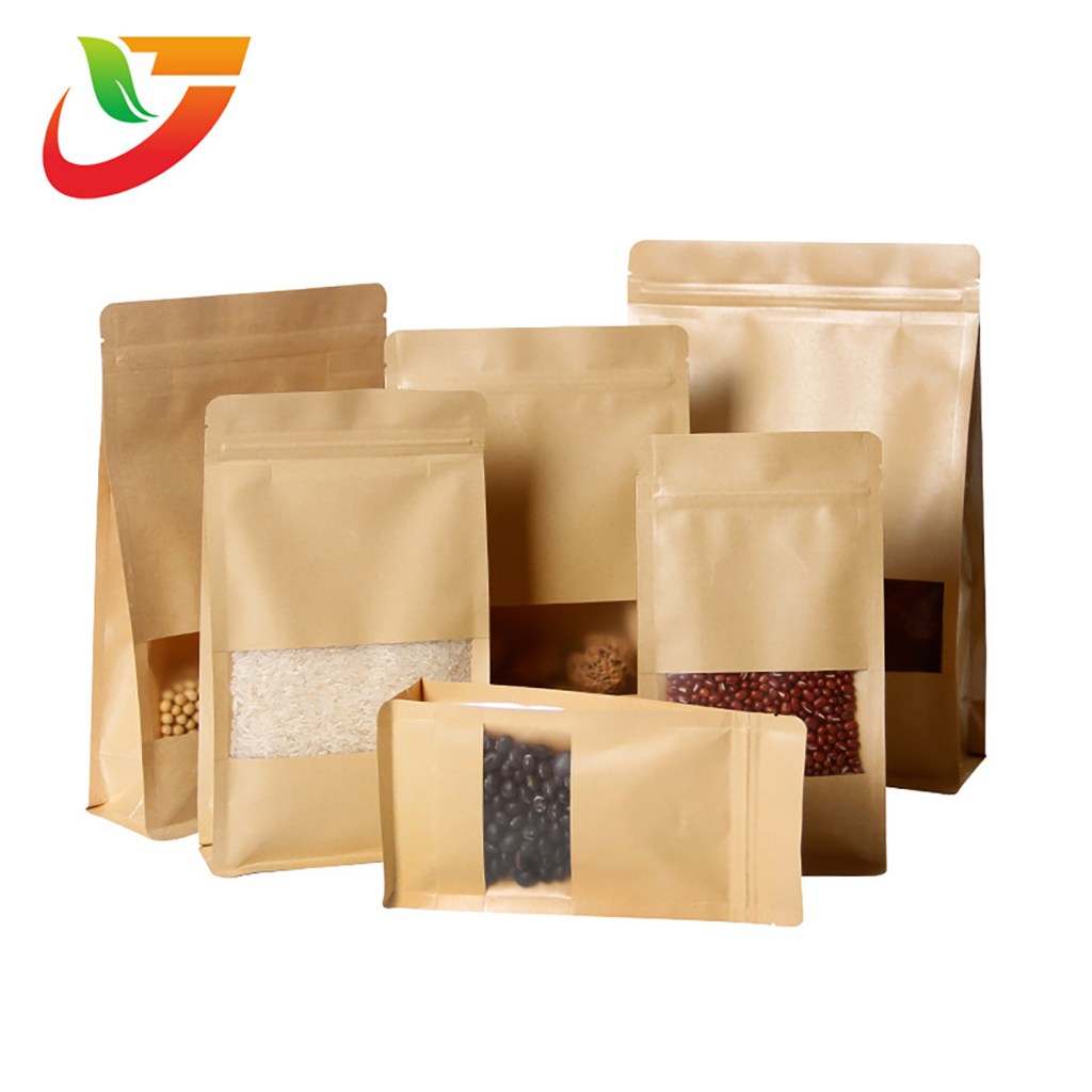 Multi-Specification Pack Wholesale Products Stand up Flat Bottom Bag with Yellow Zipper Kraft Paper