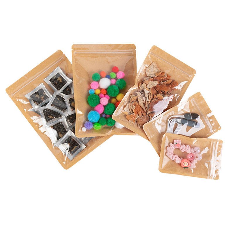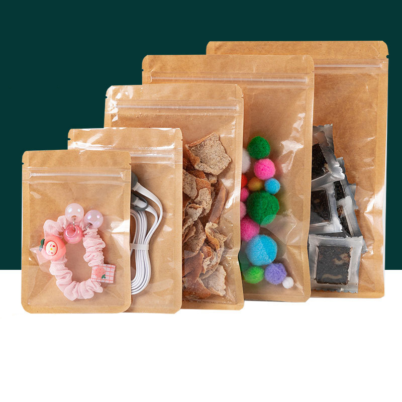 Spot Wholesale Yellow Kraft Paper Yin-Yang Zip-Lock Bag Translucent Pull Bone Bag Food Jewelry Sealed Zipper Ziplock Bag